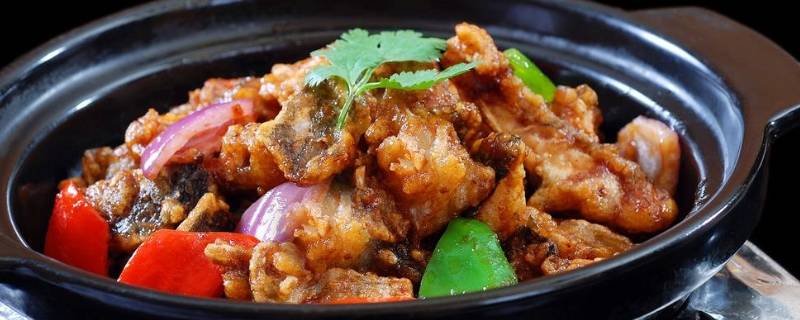 6、加入调好酱汁翻拌均匀,加入小洋葱、橙皮、香菜、青红椒翻炒均匀。