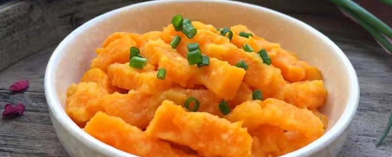 2、南瓜去皮、去瓤后切成条。
