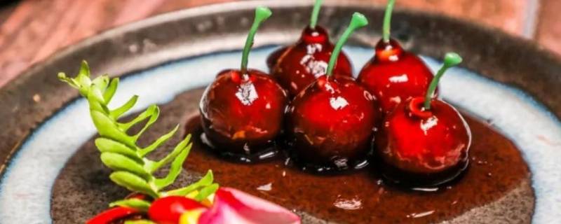 五六个车厘子打烂,跟草莓酱拌在一起,作为配酱,摆盘即可。