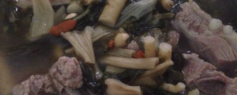 2、把所有材料清洗干净,把菜干的沙子洗干净,然后剪成一小段,加入猪骨头,一起煲1.5个小时。