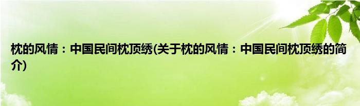 本文关于枕的风情:中国民间枕顶绣的简介就讲解完毕,希望对大家有所帮助。