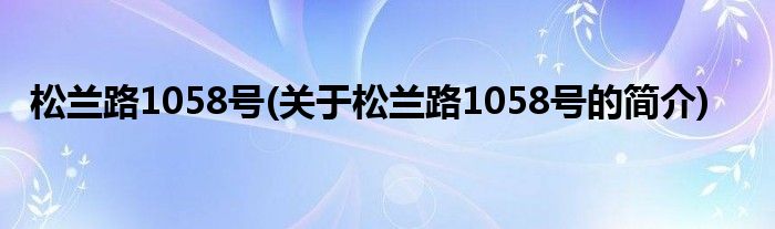 本文关于松兰路1058号的简介就讲解完毕,希望对大家有所帮助。
