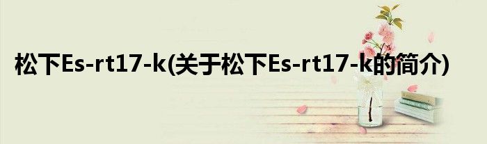 大家好,松下Es-rt17-k,关于松下Es-rt17-k的简介很多人还不知道,现在让我们一起来看看吧!