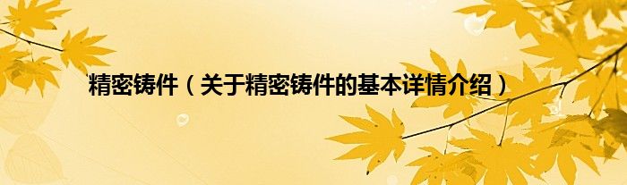 本文关于精密铸件的基本详情介绍就讲解完毕,希望对大家有所帮助。