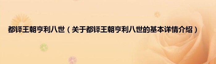 本文关于都铎王朝亨利八世的基本详情介绍就讲解完毕,希望对大家有所帮助。