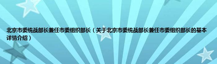 本文关于北京市委统战部长兼任市委组织部长的基本详情介绍就讲解完毕,希望对大家有所帮助。