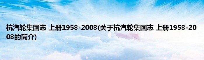 本文关于杭汽轮集团志 上册1958-2008的简介就讲解完毕,希望对大家有所帮助。