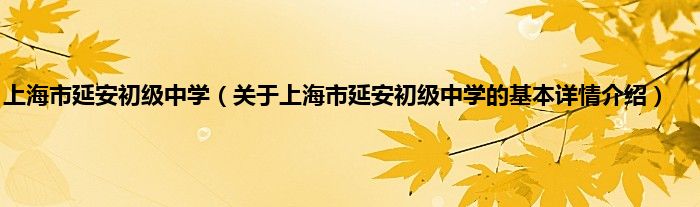 本文关于上海市延安初级中学的基本详情介绍就讲解完毕,希望对大家有所帮助。