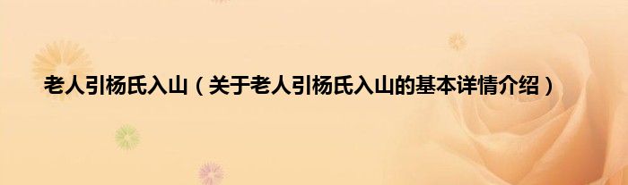 本文关于老人引杨氏入山的基本详情介绍就讲解完毕,希望对大家有所帮助。