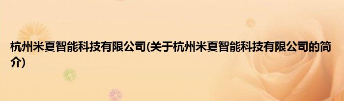 本文关于杭州米夏智能科技有限公司的简介就讲解完毕,希望对大家有所帮助。