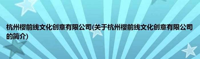 本文关于杭州樱前线文化创意有限公司的简介就讲解完毕,希望对大家有所帮助。