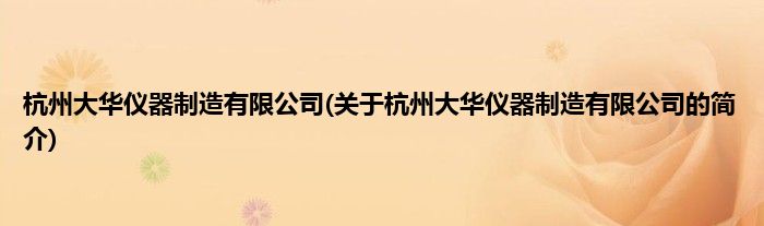 本文关于杭州大华仪器制造有限公司的简介就讲解完毕,希望对大家有所帮助。