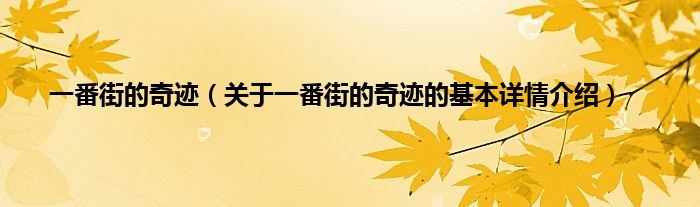 本文关于一番街的奇迹的基本详情介绍就讲解完毕,希望对大家有所帮助。