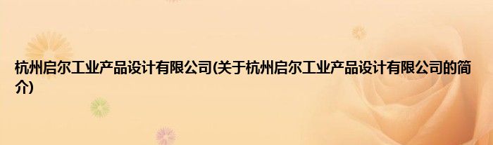 本文关于杭州启尔工业产品设计有限公司的简介就讲解完毕,希望对大家有所帮助。