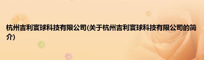 本文关于杭州吉利寰球科技有限公司的简介就讲解完毕,希望对大家有所帮助。