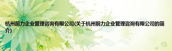 本文关于杭州前力企业管理咨询有限公司的简介就讲解完毕,希望对大家有所帮助。