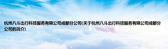 本文关于杭州八斗出行科技服务有限公司成都分公司的简介就讲解完毕,希望对大家有所帮助。