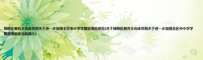 本文关于杨陵区教育文化体育局关于进一步加强全区中小学学籍管理的意见的简介就讲解完毕,希望对大家有所帮助。