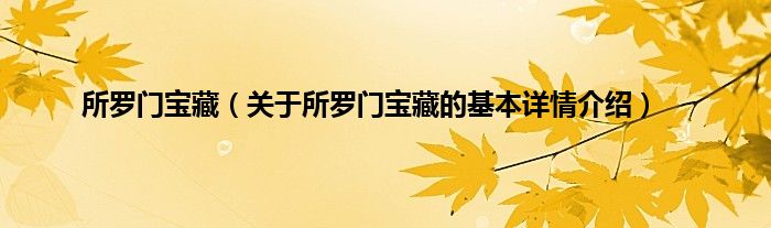 所罗门宝藏(关于所罗门宝藏的基本详情介绍)