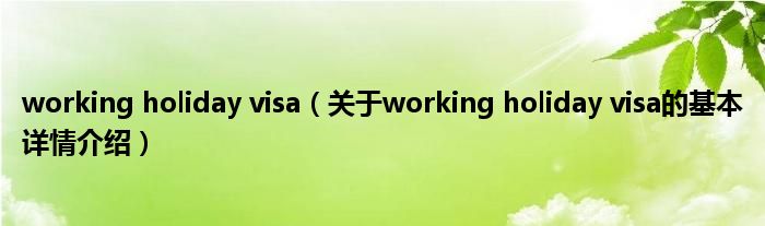 本文关于working holiday visa的基本详情介绍就讲解完毕,希望对大家有所帮助。
