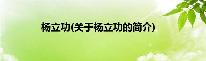 本文关于杨立功的简介就讲解完毕,希望对大家有所帮助。