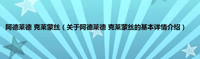 本文关于阿德莱德 克莱蒙丝的基本详情介绍就讲解完毕,希望对大家有所帮助。