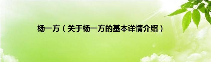 本文关于杨一方的基本详情介绍就讲解完毕,希望对大家有所帮助。