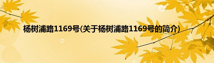 本文关于杨树浦路1169号的简介就讲解完毕,希望对大家有所帮助。