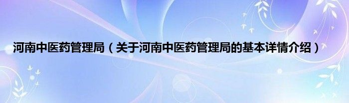 本文关于河南中医药管理局的基本详情介绍就讲解完毕,希望对大家有所帮助。
