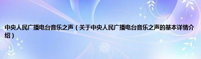 本文关于中央人民广播电台音乐之声的基本详情介绍就讲解完毕,希望对大家有所帮助。