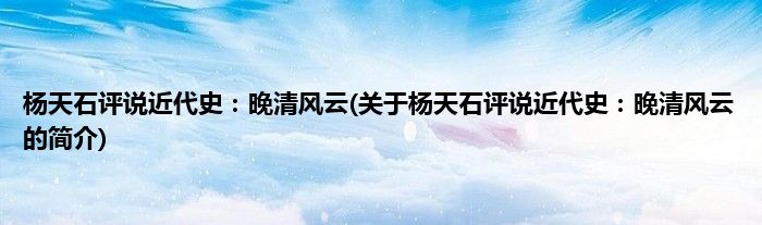 大家好,杨天石评说近代史:晚清风云,关于杨天石评说近代史:晚清风云的简介很多人还不知道,现在让我们一起来看看吧!