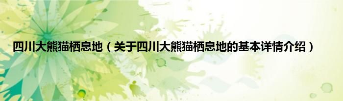 本文关于四川大熊猫栖息地的基本详情介绍就讲解完毕,希望对大家有所帮助。
