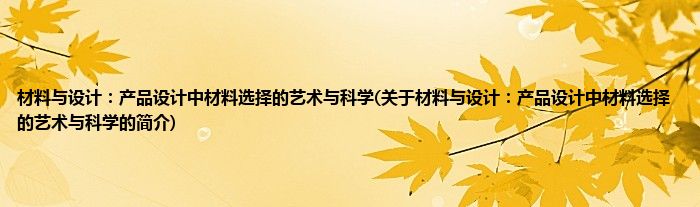 本文关于材料与设计:产品设计中材料选择的艺术与科学的简介就讲解完毕,希望对大家有所帮助。