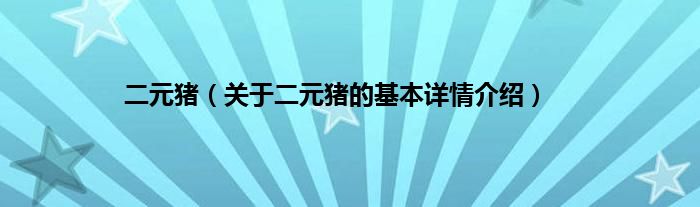 本文关于二元猪的基本详情介绍就讲解完毕,希望对大家有所帮助。