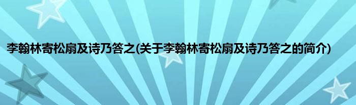 本文关于李翰林寄松扇及诗乃答之的简介就讲解完毕,希望对大家有所帮助。