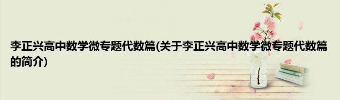 本文关于李正兴高中数学微专题代数篇的简介就讲解完毕,希望对大家有所帮助。