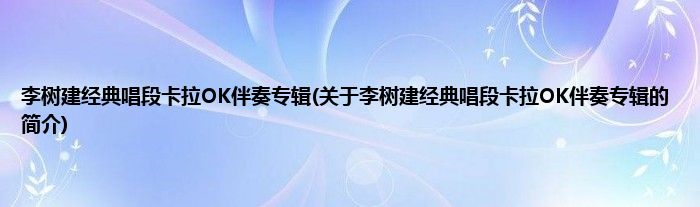 本文关于李树建经典唱段卡拉OK伴奏专辑的简介就讲解完毕,希望对大家有所帮助。