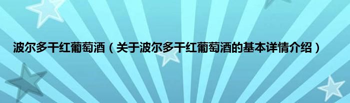 本文关于波尔多干红葡萄酒的基本详情介绍就讲解完毕,希望对大家有所帮助。