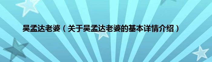 吴孟达老婆(关于吴孟达老婆的基本详情介绍)