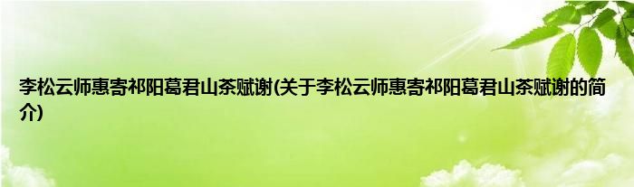 本文关于李松云师惠寄祁阳葛君山茶赋谢的简介就讲解完毕,希望对大家有所帮助。
