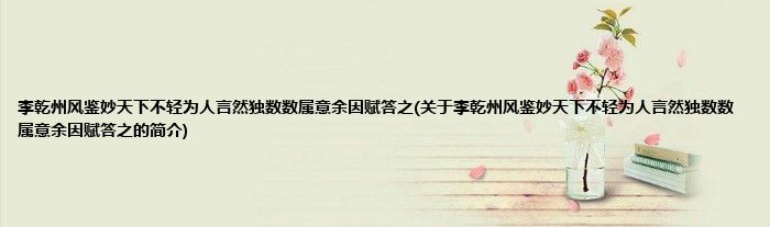 大家好,李乾州风鉴妙天下不轻为人言然独数数属意余因赋答之,关于李乾州风鉴妙天下不轻为人言然独数数属意余因赋答之的简介很多人还不知道,现在让我们一起来看看吧!