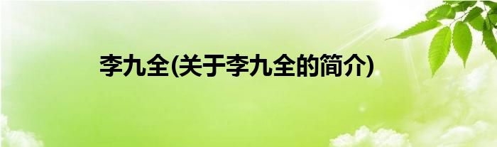 本文关于李九全的简介就讲解完毕,希望对大家有所帮助。
