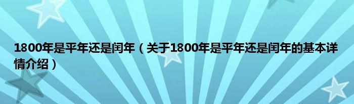 本文关于1800年是平年还是闰年的基本详情介绍就讲解完毕,希望对大家有所帮助。