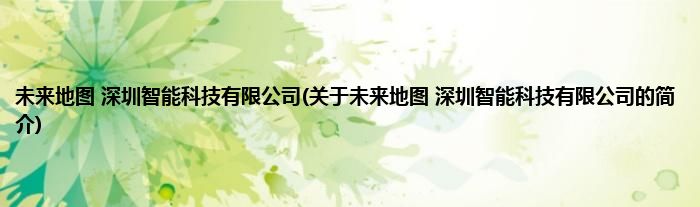 本文关于未来地图 深圳智能科技有限公司的简介就讲解完毕,希望对大家有所帮助。