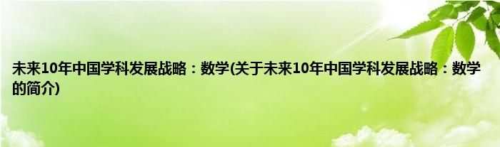 大家好,未来10年中国学科发展战略:数学,关于未来10年中国学科发展战略:数学的简介很多人还不知道,现在让我们一起来看看吧!