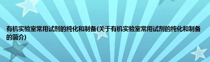 本文关于有机实验室常用试剂的纯化和制备的简介就讲解完毕,希望对大家有所帮助。
