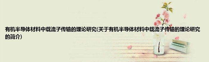 有机半导体材料中载流子传输的理论研究(关于有机半导体材料中载流子传输的理论研究的简介)