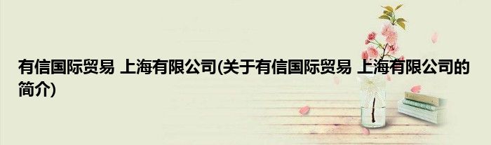 本文关于有信国际贸易 上海有限公司的简介就讲解完毕,希望对大家有所帮助。