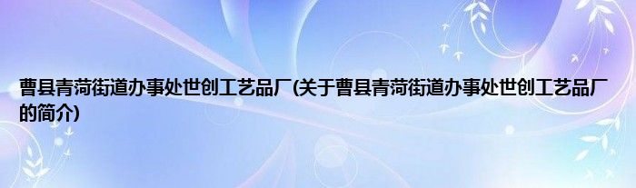 本文关于曹县青菏街道办事处世创工艺品厂的简介就讲解完毕,希望对大家有所帮助。