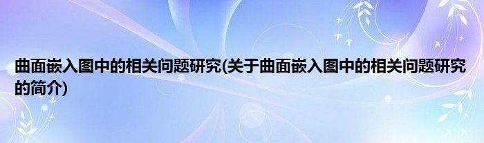 大家好,曲面嵌入图中的相关问题研究,关于曲面嵌入图中的相关问题研究的简介很多人还不知道,现在让我们一起来看看吧!